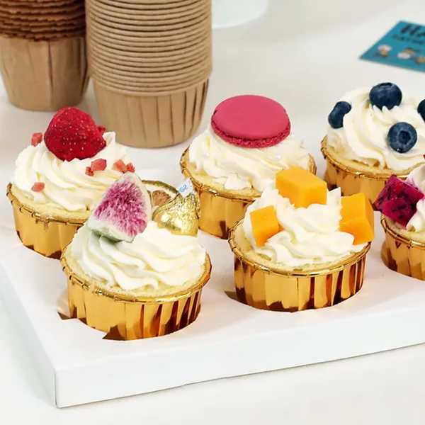 Az arany színű muffin papír sütőformák elegáns megjelenést kölcsönöznek minden süteménynek, miközben megbízhatóan tartják a tésztát a sütés teljes ideje alatt. A csomag 50 darab, hőálló papírból készült formát tartalmaz, melyek 220 °C-ig megőrzik alakjukat, így ideálisak otthoni sütéshez, cukrászdába vagy ünnepi alkalmakra.