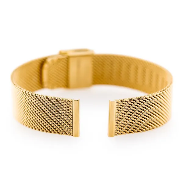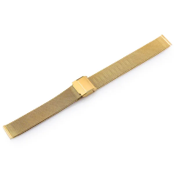 Rugalmasan állítható, prémium minőségű „mesh” kialakítású óraszíj 14 mm-es tokfül-szélességű órákhoz. A rozsdamentes acél alapanyagot kopásálló, aranyszínű PVD bevonat óvja a karcolásoktól, így elegáns, mégis tartós kiegészítőt kap.