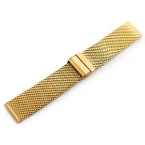 Kiváló minőségű, arany színű acél milánói óraszíj elegáns, finom szövésű hálós kialakítással.