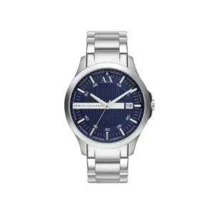 Az Armani Exchange AX2132 férfi karóra elegáns és modern választás, amely könnyedén illik a hétköznapi és az alkalmi megjelenéshez is. Az ezüstszínű rozsdamentes acél tok és szíj, valamint a sötétkék, napfényhatású számlap kifinomult összhatást teremt.