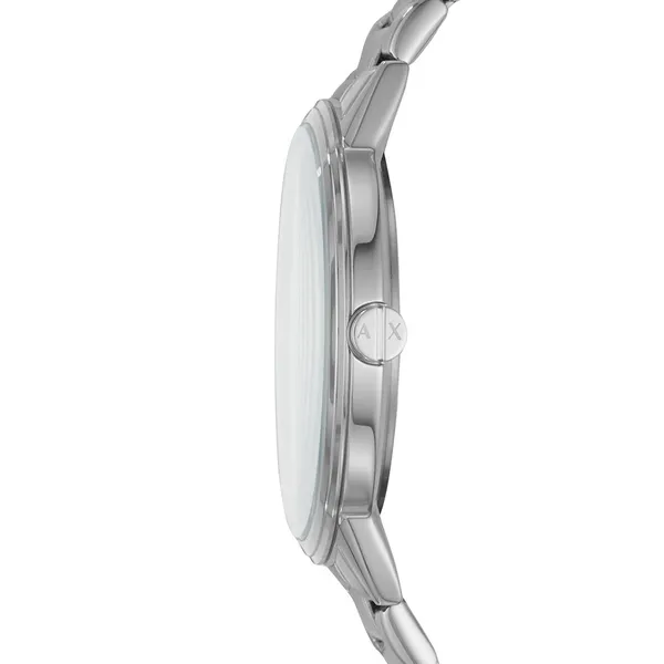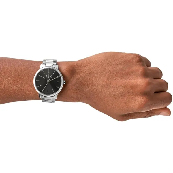 Az Armani Exchange AX2700 férfi karóra elegáns modell, amely a klasszikus megjelenést modern részletekkel ötvözi. A fekete számlap letisztult hatást kelt, miközben az ezüstszínű indexek és mutatók kontrasztos, jól olvasható megjelenést biztosítanak. A karóra harmonikus választás mindennapi viselethez és alkalmi öltözékhez is.