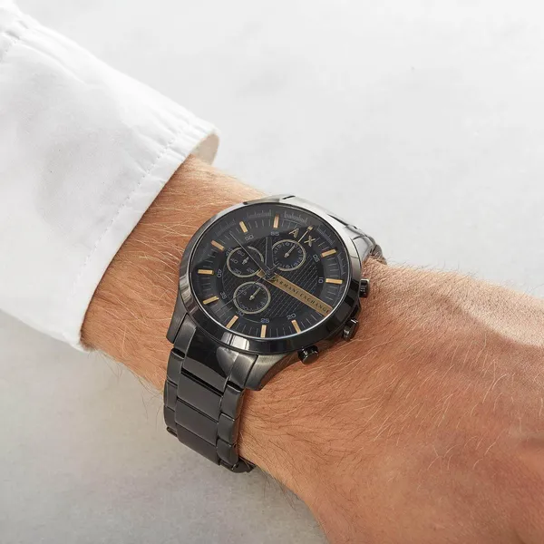 Az Armani Exchange AX2164 férfi karóra modern és elegáns választás, amely stílusosan egészíti ki a mindennapi és alkalmi öltözéket is. A klasszikus fekete színvilág sokoldalúan kombinálható, míg a 46 mm-es rozsdamentes acél tok és a fekete acél szíj karakteres, mégis időtálló megjelenést ad.
