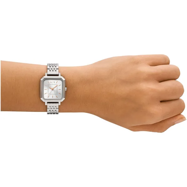 Az Armani Exchange Leila AX5724 női karóra a modern, városi elegancia tökéletes megtestesítője. Az ezüstszínű acél tok és szíj, valamint a letisztult ezüst számlap együttese prémium hatást kelt, miközben könnyedén illeszkedik a mindennapi és alkalmi szettekhez is.