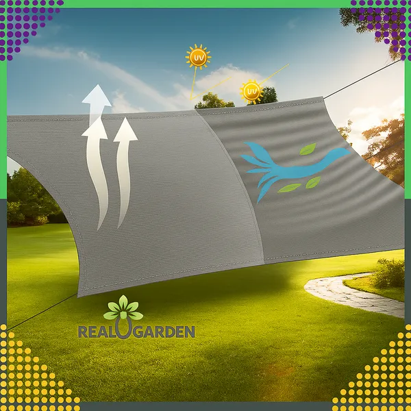 Erősen szőtt, 180 g/m² sűrűségű HDPE + PP szálai 95 %-ban kiszűrik a napfényt, így kellemes mikroklímát teremtenek, miközben az UV-álló adalékok hosszú élettartamot biztosítanak.