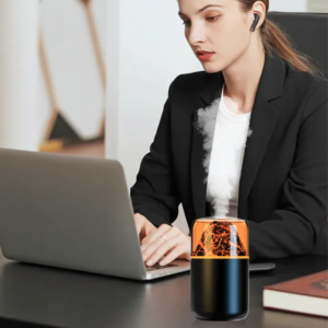 Ez a vulkán tűzhatású LED párásító egyszerre teremt meghitt hangulatot és optimális páratartalmat otthonodban vagy az irodában. Ultrahangos technológiája finom köddé alakítja a vizet, amelyhez illóolajat is keverhetsz, így kellemes illat tölti meg a teret.