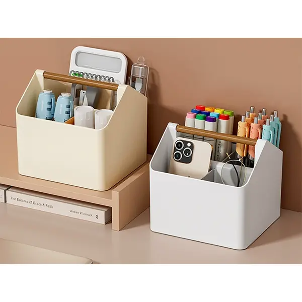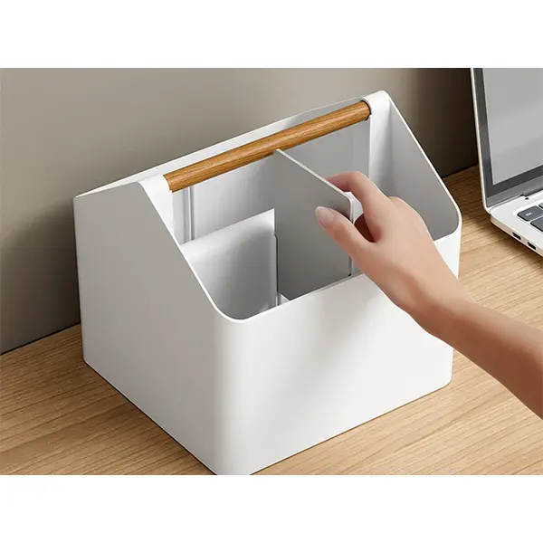 Tarts rendet stílusosan az íróasztalon és a fürdőszobában is! Ez a praktikus, hordozható rendszerező ideális kozmetikumokhoz és iskolai/irodai apróságokhoz. Minimalista megjelenése bármilyen enteriőrbe illik, a fa fogantyúnak köszönhetően pedig könnyen áthelyezhető oda, ahol épp szükséged van rá.