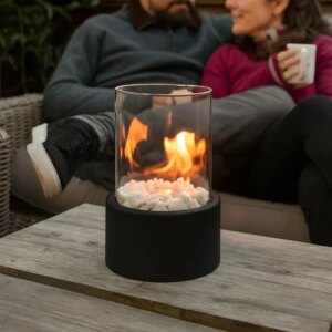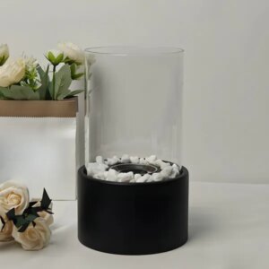 Asztali fekete, füstmentes bioetanol kandalló, Ø14×28 cm