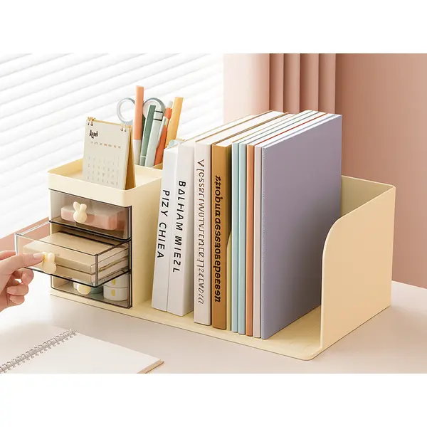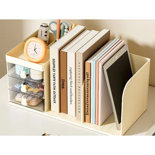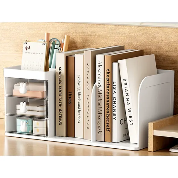 Asztali iratrendező és tároló 3 fiókkal, könyvtartóval