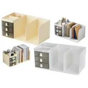 Tarts rendet stílusosan az íróasztalon, a polcon vagy a fésülködőasztalon! Ez a masszív, minimalista asztali rendszerező többféle rekesszel és 3 beépített fiókkal segít, hogy a tollak, jegyzetek, tankönyvek és apróságok mindig kéznél legyenek – káosz nélkül.