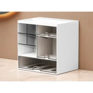 Tarts rendet egyetlen, elegáns megoldással! Ez a masszív, minimalista asztali rendszerező tökéletes a kozmetikumok, irodaszerek és apróságok átlátható tárolására. Kompakt mérete mellett is meglepően sok fér bele, így a mindennapokban gyorsabban megtalálsz mindent.