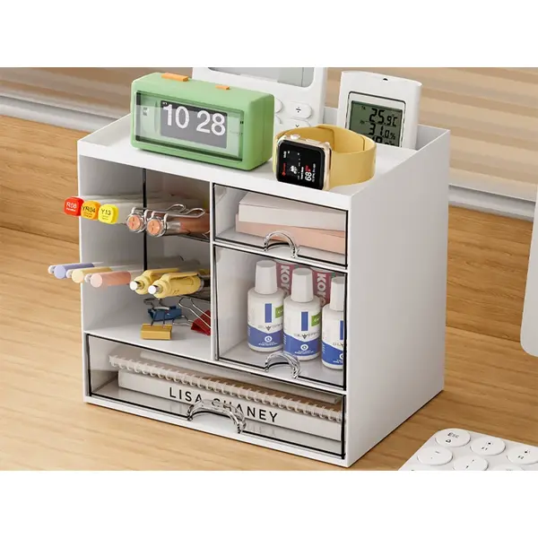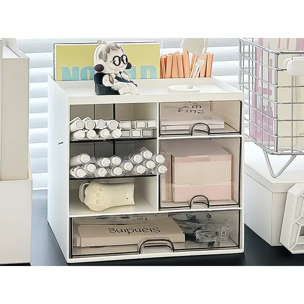 Asztali kozmetikai és irodaszervező fiókokkal, fehér