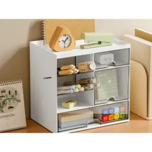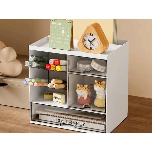 • Több rekesz és polc: ecsetekhez, rúzsokhoz, tollakhoz, jegyzetekhez