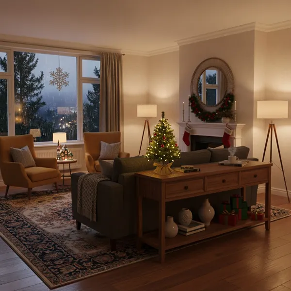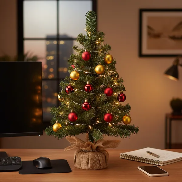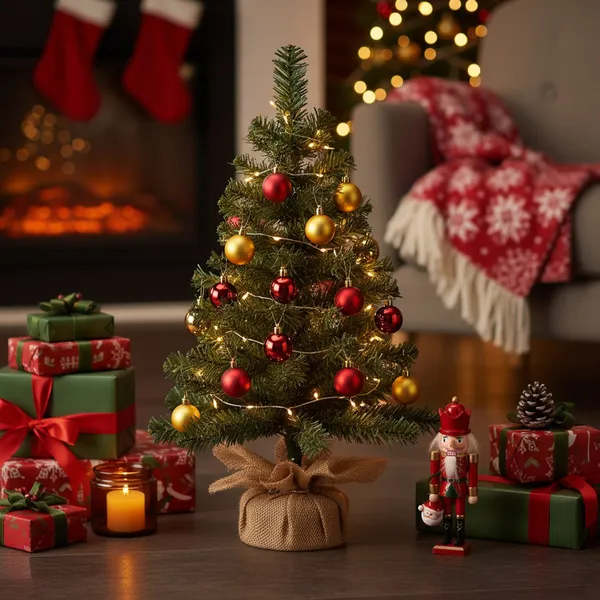 Sűrű, zöld PVC ágakkal és kerek fa talppal ellátott, 60 cm-es asztali műfenyő, amely természetes hatást kelt, mégis tartós és újrahasználható; egyszerű formázása révén percek alatt ünnepi hangulatot varázsol bármely belső térbe.