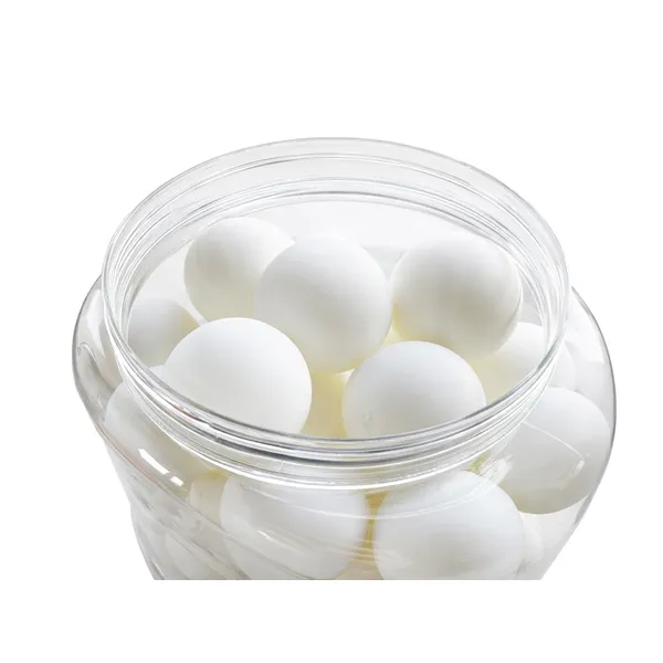 60 darab fehér asztalitenisz (pingpong) labda edzéshez és szabadidős játékhoz, praktikus, átlátszó, fogantyús tárolódobozban. Tartós műanyagból készültek, így megbízható pattogást és egyenletes játékérzetet adnak – ideális választás iskolákba, sportegyesületekbe és otthoni használatra.