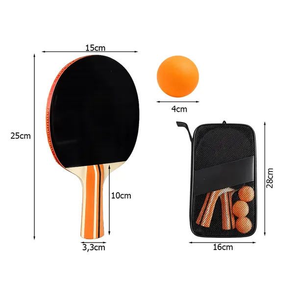 Kezdj el játszani azonnal ezzel a komplett asztalitenisz szettel: 2 ütő, 3 labda és egy praktikus, cipzáras tok egy csomagban. Remek választás kezdőknek és hobbijátékosoknak otthonra, iskolába vagy utazáshoz.
