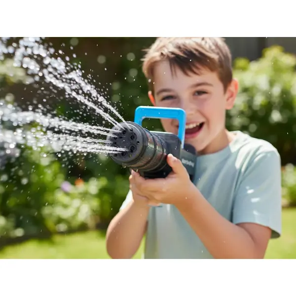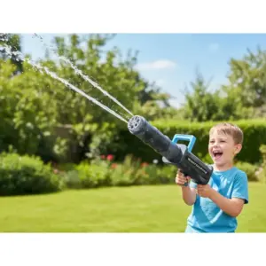 Forró napokra és szabadtéri kalandokhoz készült: töltsd fel a beépített tartályt, és a vízipisztoly automatikusan felszívja a vizet, majd erős, messzire érő vízsugarat lő. Nincs kézi pumpálás, csak gyors, folyamatos játék.