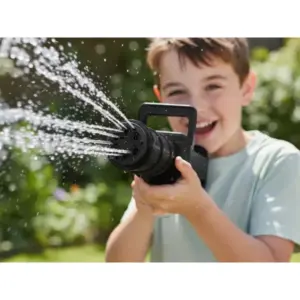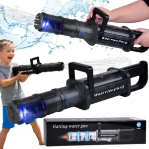 Ez az elektromos vízipisztoly tökéletes választás a forró nyári napokra, kerti játékhoz, vízicsatákhoz vagy családi összejövetelekhez. Csak töltse fel a tartályt, és a készülék automatikusan szivattyúzza a vizet, így nincs szükség kézi pumpálásra.