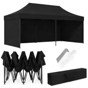 Automata összecsukható kerti pavilon sátor 3×6 m, fekete, 4 oldalfal