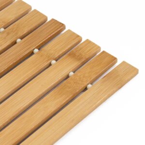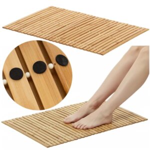 A bambusz kilépő természetes megjelenést ad a fürdőszobának, miközben a lécek közötti hézagok segítik a víz elvezetését és a gyorsabb száradást. A csúszásgátló talpaknak köszönhetően biztonságosabb érzetet nyújt nedves felületen is.