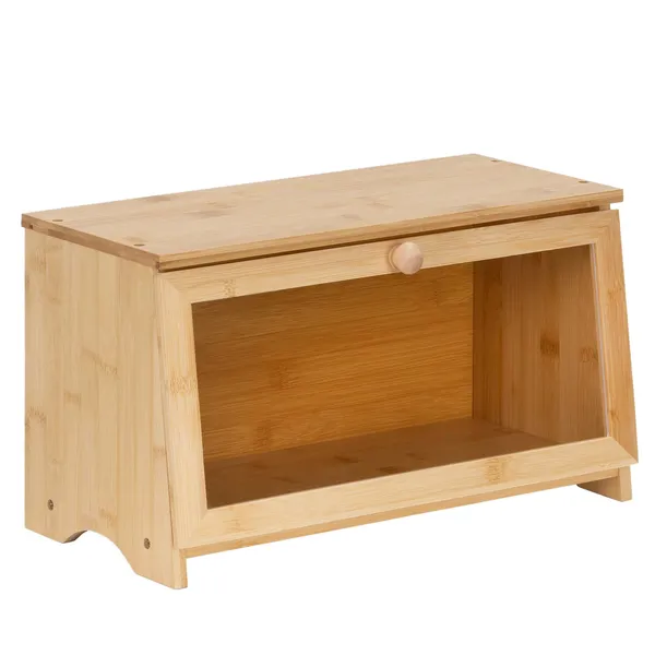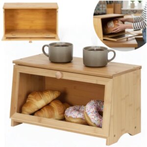 Természetes bambusz kenyértartó átlátszó akril ablakkal, hogy egy pillantással lásd, mi van benne. A mágneses zárás és az oldalsó fogantyúk kényelmes használatot adnak, miközben a pékárut rendezetten, portól védve tárolhatod a konyhapulton.