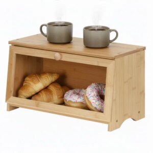 Praktikus és esztétikus kenyértartó természetes bambuszból, átlátszó akril betekintőablakkal. Segít rendezetten tartani a pulton a pékárut, miközben véd a portól, és gyorsan ellenőrizheted a tartalmát anélkül, hogy kinyitnád.