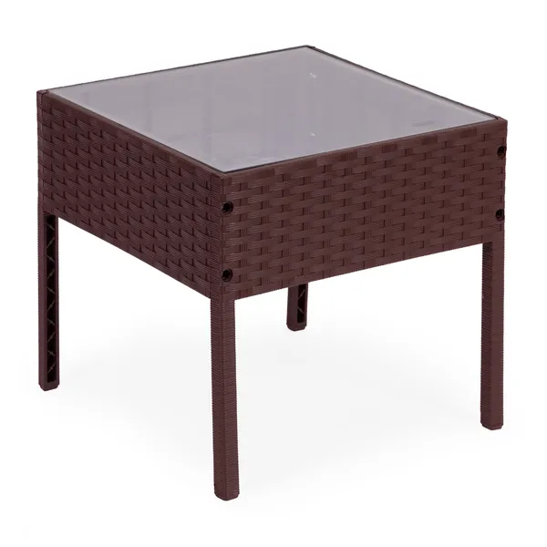 Barna 2 személyes kerti bútor szett, 2 fotel + üvegasztal, polyrattan hatás