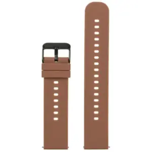 Barna színű gumi óraszíj fekete fémcsattal.