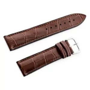 Kényelmes, tartós óraszíj gumialappal és elegáns bőr felsőrésszel, amely egyszerre biztosít sportos viseletet és igényes megjelenést. Az ezüstszínű fémcsat stabil rögzítést ad, a barna varrás pedig stílusos részletként emeli ki a szíj karakterét.