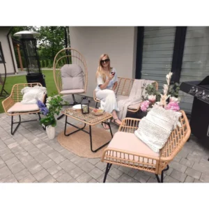 • Időtálló anyagok: galvanizált acél váz, UV-álló kerek és lapos polirattan fonat