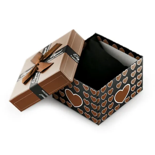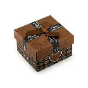 Elegáns, szív alakú karton óradoboz barna és fekete színben, barna szalaggal díszítve. Ideális választás karóra stílusos átadásához ajándékként.