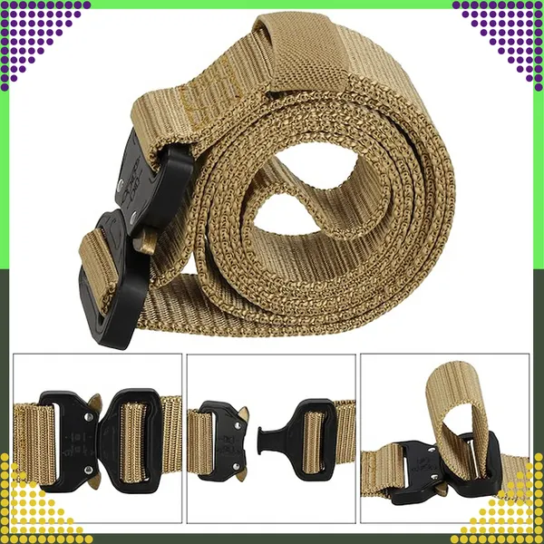 Barna taktikai nylon öv 120 cm – gyorskioldó QR csattal