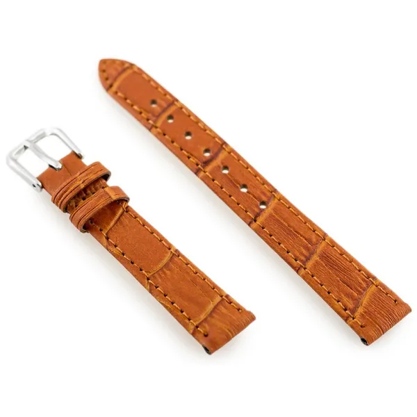 Természetes bőrből készült barna óraszíj barna varrással és ezüstszínű fém csattal. Klasszikus megjelenése kényelmes viseletet és elegáns hatást biztosít a mindennapokban.