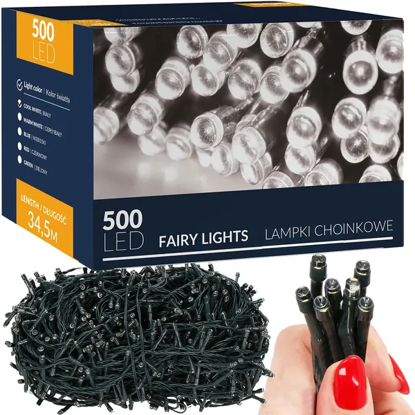 Beltéri karácsonyi LED fényfüzér 500 LED, hideg fehér, 33 m, 8 mód