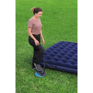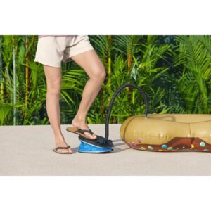 Egyszerűen csatlakoztassa a megfelelő fúvókát, helyezze a pumpát stabil talajra, majd pumpáljon a lábával egyenletesen. A fényesre fújt matrac és a hűsítő medence perceken belül készen áll!