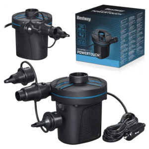 Az autós szivargyújtóról is működő, 680 l/perc teljesítményű Bestway elektromos pumpa villámgyorsan felfújja, szükség esetén le is ereszti matracodat, medencédet. Kompakt mérete és három adaptere révén bárhova magaddal viheted, így időt és energiát spórolsz, a kényelmes nyaralásokhoz és hétvégi kiruccanásokhoz is.