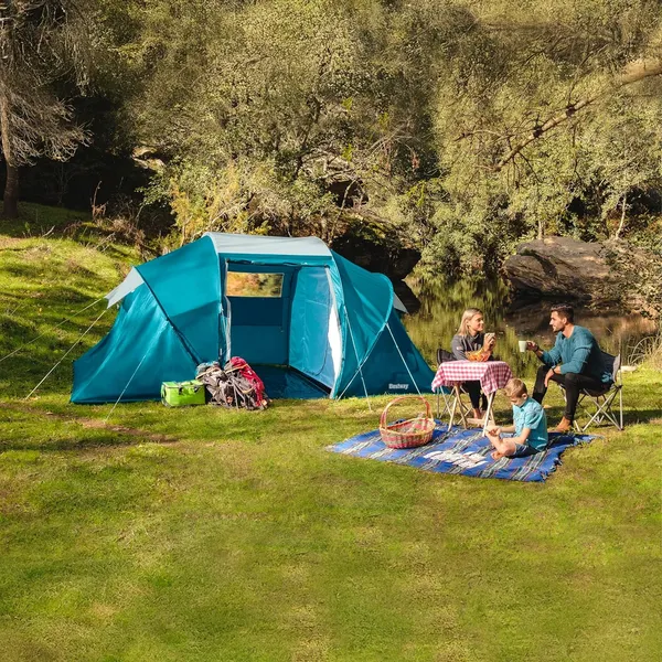Könnyű, vízálló sátor 4 főnek, mely pillanatok alatt felállítható és tágas belteret kínál a családi kempingezésekhez. A hálós szellőzők és a tartós poliészter védelem gondoskodnak a friss levegőről és a száraz, biztonságos éjszakákról.
