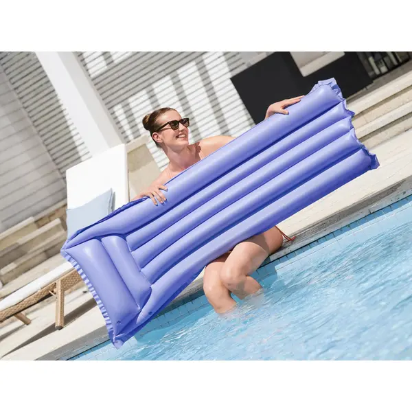 Kényelmes, egyszemélyes felfújható matrac pihenéshez a vízen, medencébe, tóra vagy nyugodt tengerpartra. Strapabíró PVC-ből készül, könnyű és kis helyen elfér, a mellékelt vízálló javítófolttal pedig a kisebb sérülések gyorsan orvosolhatók.