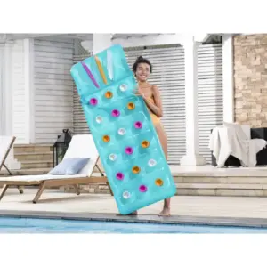 Kényelmes nyári lebegéshez tervezett, párnával ellátott strandmatrac, amely felnőtteknek is tágas felületet ad pihenéshez. Könnyű, kis helyen elfér, gyorsan magaddal viheted a strandra vagy a medencéhez, és javítótapasszal is érkezik az extra biztonságért.