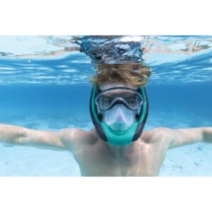 A Bestway Hydro-Force 24060 teljes arcmaszkja természetes, száj- és orrlégzést tesz lehetővé, miközben kristálytiszta, 180°-os panorámaképet nyújt a víz alatt. Ergonomikus kialakítása kényelmesen illeszkedik az S/M méretű arcformákhoz, a szilikon perem pedig vízzáró tömítést biztosít.