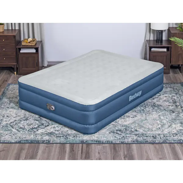 A Bestway kétszemélyes felfújható matrac kényelmes és praktikus megoldás vendégágynak, kempingezéshez, vagy pihenéshez a teraszon és a kertben. A 203 × 152 × 46 cm-es méret két felnőtt számára is tágas fekvőfelületet ad, a megemelt magasság pedig megkönnyíti a le- és felkelést.