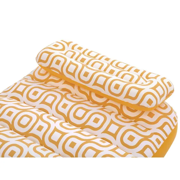 A beépített párna megtámasztja a fejet és a nyakat, hogy hosszabb pihenés közben is kényelmesen elnyújtózhass. Az integrált pohártartóval a kedvenc italod mindig kéznél van – ideális napozáshoz, lebegéshez és lazításhoz.