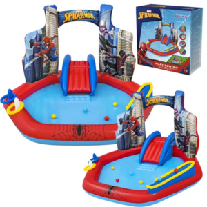 A tartós vinilből készült Spider-Man játszótér csúszdával és vízpermetezővel teszi felejthetetlenné a nyári játékot. Puha falai biztonságot nyújtanak, a gyors leeresztő szelep pedig megkönnyíti a tárolást.