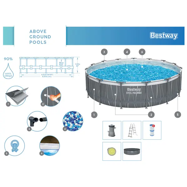 A Bestway Steel Pro MAX™ fémvázas medence ideális választás a forró nyári napokra: kellemes felfrissülést, pihenést és családi szórakozást ad a saját kertben. A masszív acélvázas felépítés, a modern anyaghasználat és a látványos, színes LED-háttérvilágítás különleges hangulatot teremt nappal és este is.