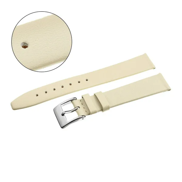 Természetes bőrből készült, bézs színű óraszíj, amely kényelmes viseletet és elegáns, időtálló megjelenést biztosít. Az ezüstszínű csat és a klasszikus kialakítás sokféle óratokhoz könnyen illeszkedik.