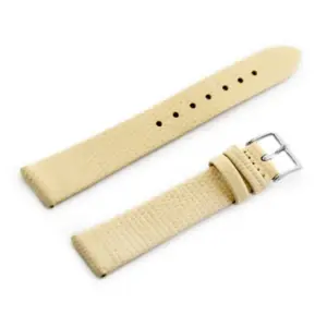 Természetes bőrből készült óraszíj elegáns bézs színben, ezüstszínű fém csattal. Kényelmes viseletet és klasszikus megjelenést biztosít a mindennapokban, miközben egyszerűen illeszthető a 18 mm-es tokfülekhez.