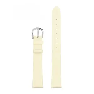 Természetes bőrből készült, bézs színű óraszíj bézs varrással és ezüstszínű fém csattal. Kényelmes, elegáns választás a mindennapi viselethez és klasszikus karórákhoz.