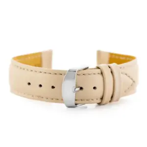 Természetes bőrből készült, kényelmes és elegáns választás, amely bézs színével könnyen illik klasszikus és hétköznapi órákhoz. Az ezüstszínű csat és a több állítási lehetőség praktikus, biztos viseletet nyújt a nap folyamán.