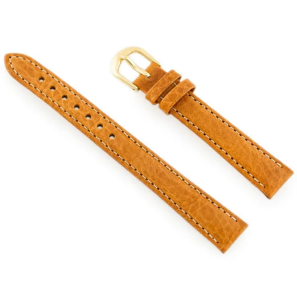 Bisset 14 mm világosbarna valódi bőr óraszíj arany csattal