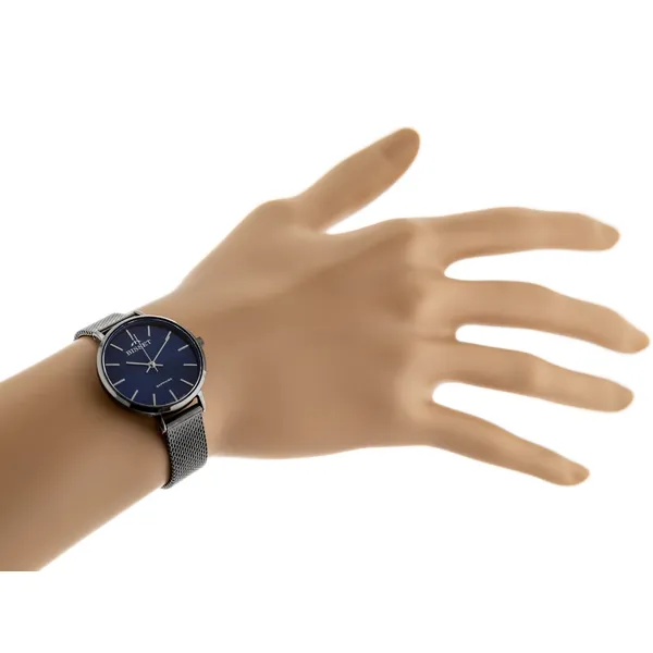 • Szín: kék számlap, ezüst indexek, szürke tok és szíj