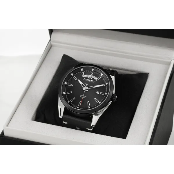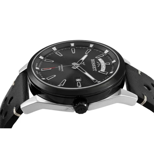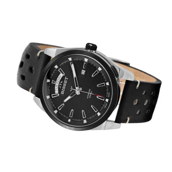 Bisset BSCF39 férfi automata karóra, fekete bőrszíj, WR50, 40 mm